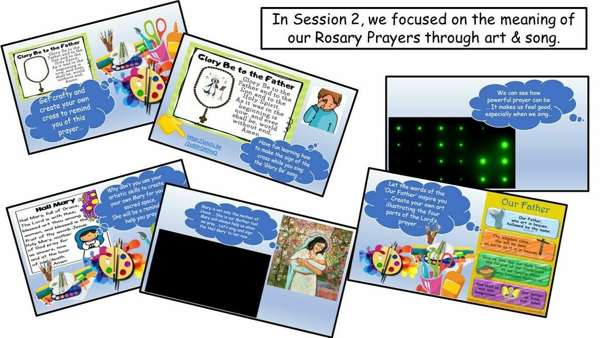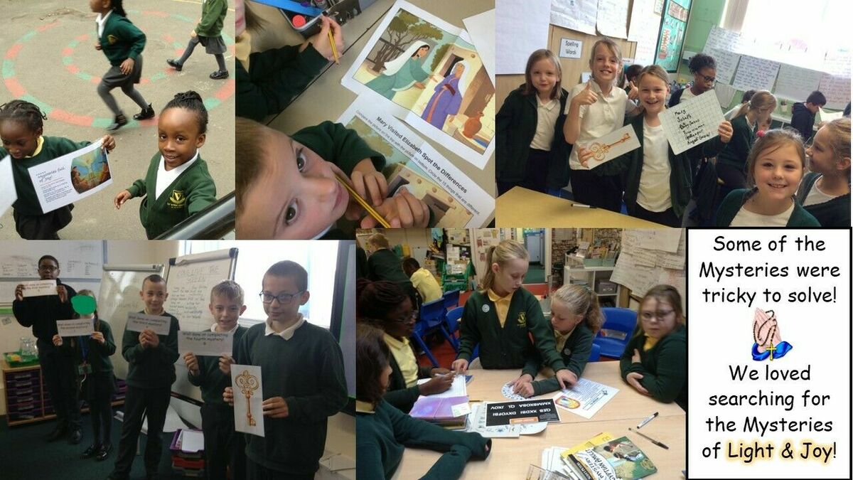 We have daily collective worship in school either in classrooms or in the school hall when we gather together as a school family. Children also pray daily in their classroom which can take a variety of forms. Rosary is prayed each week in our Rosary club, with a particular focus in May and October for the whole school.