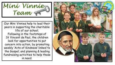 We believe that the Catholic Education that we offer at St Vincent’s develops the potential of each child. We share responsibility, along with parents and our parish community, for the education of our children and young people. Our ethos is built upon Christ’s message and is firmly embedded in everything we do: to love one another; to show kindness to all; to nurture and to grow.