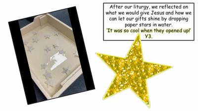 Each classroom has a ‘Sacred Space’ to enable children to explore faith and spirituality in a safe, creative and interactive way. Prayer is an integral part of the school day where all children are invited to participate in their own personal way. When possible, parents and carers are invited to join the children in prayer and acts of worship. “Stay and Pray” sessions are enjoyed across the school as well as liturgies at key times in the year. The children attend Mass with their class during the term and we celebrate whole school Masses at various points in the school year.